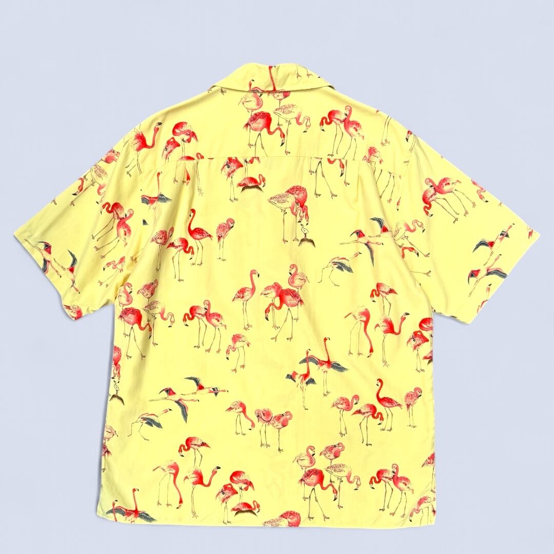 90's FRAMINGO PRINT SILK S/S SHIRT