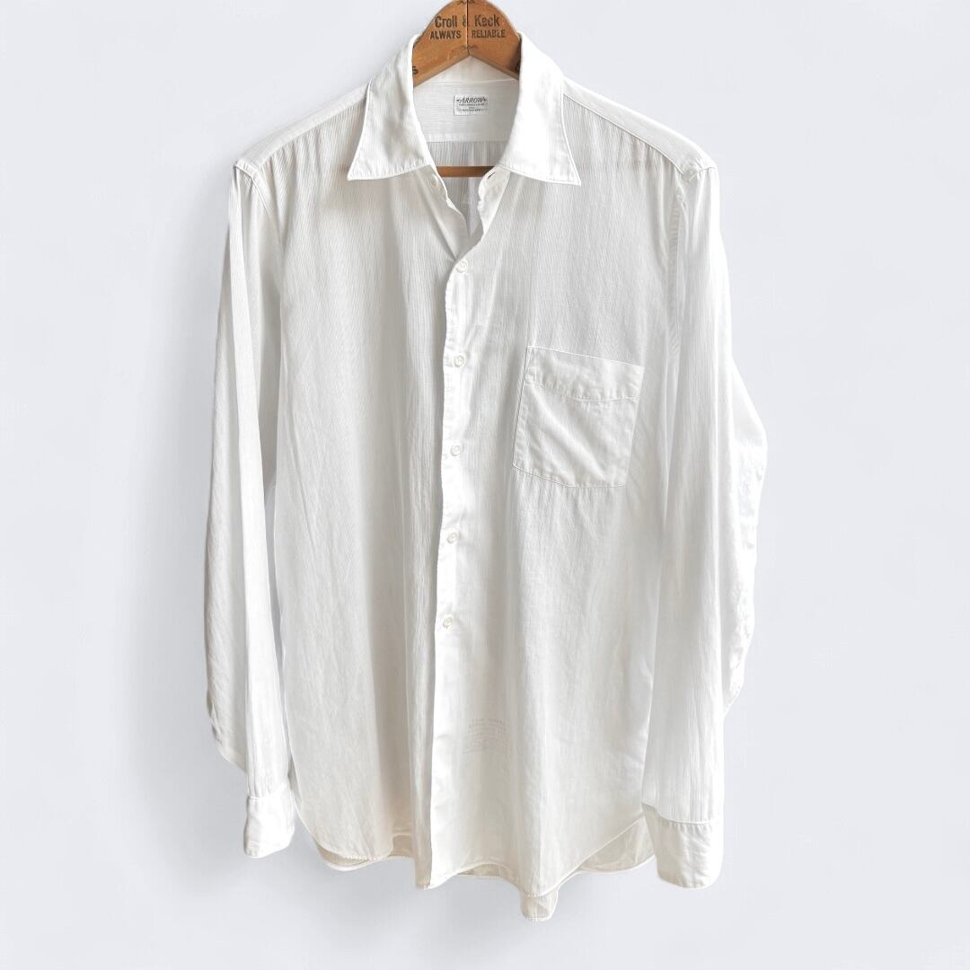 しっかりマチが入る古い年代のシャツですが極端に着丈が長すぎず、身幅は広いので今っぽく着ていただけます