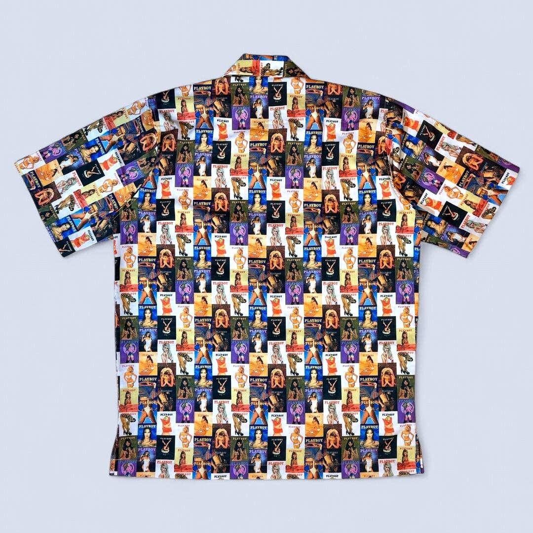 アメリカの人気ブランドPLAYBOYより名作のマガジンパターンのシャツになります