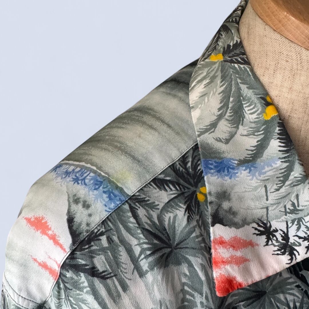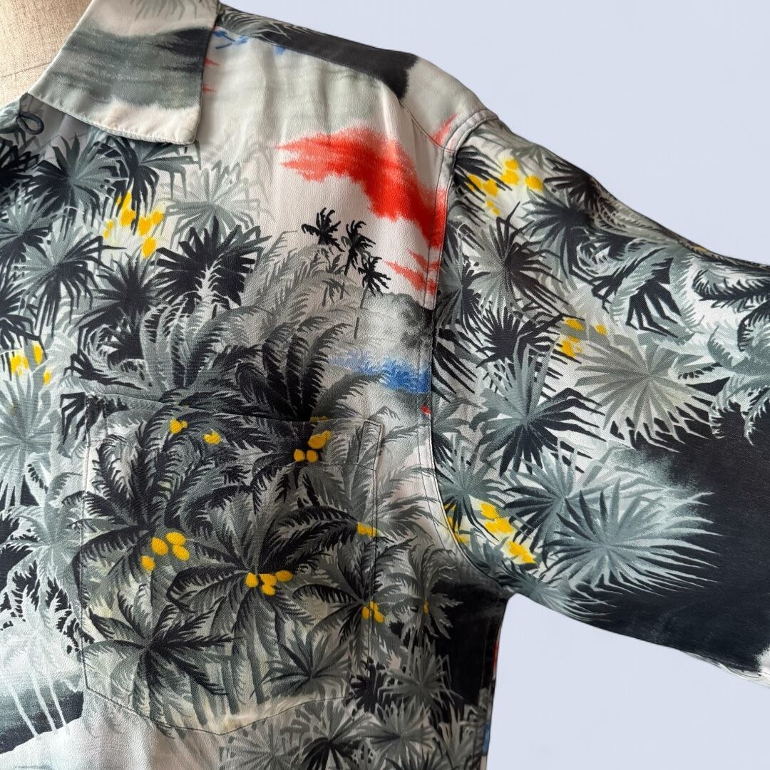 当時のハワイの空気感をそのまま閉じ込めたようなプリントは、単なるリゾートウェアを超えたアートピースとしての価値を持っています