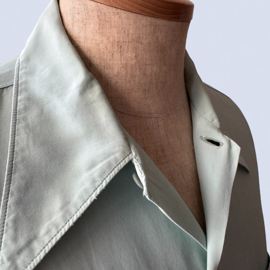 大きく鋭角に落ちるロングポイントカラーは、ジャケットインはもちろん、ロカビリースタイルや50’sコーディネートの要となるディテール