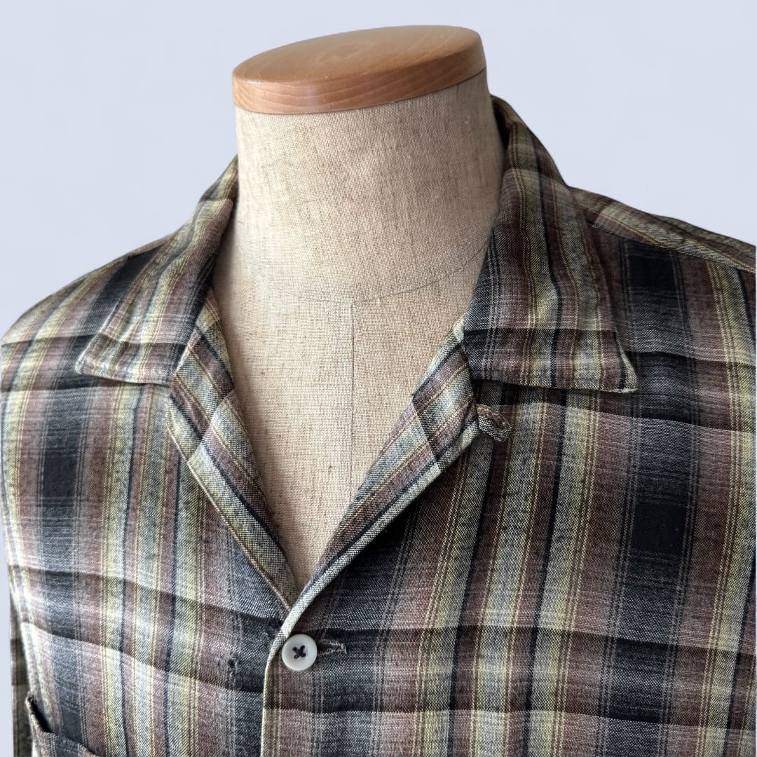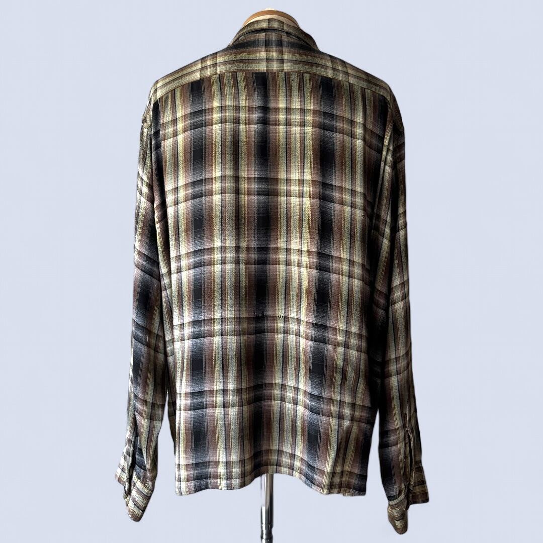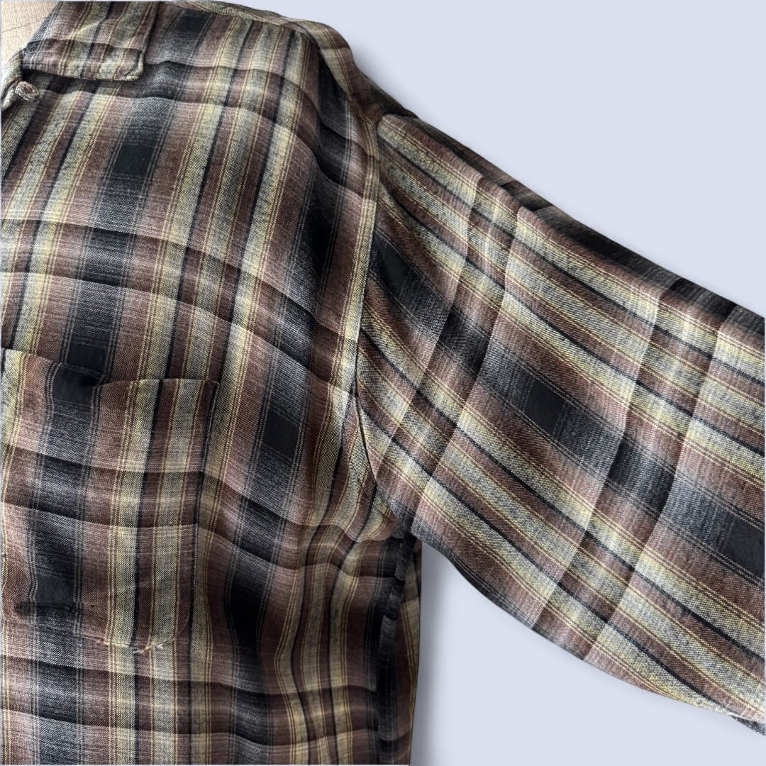 ブラウン〜ブラックを基調にした渋みのあるグラデーションチェックは、アメリカンカジュアルにおけるレーヨンシャツの美学を体現