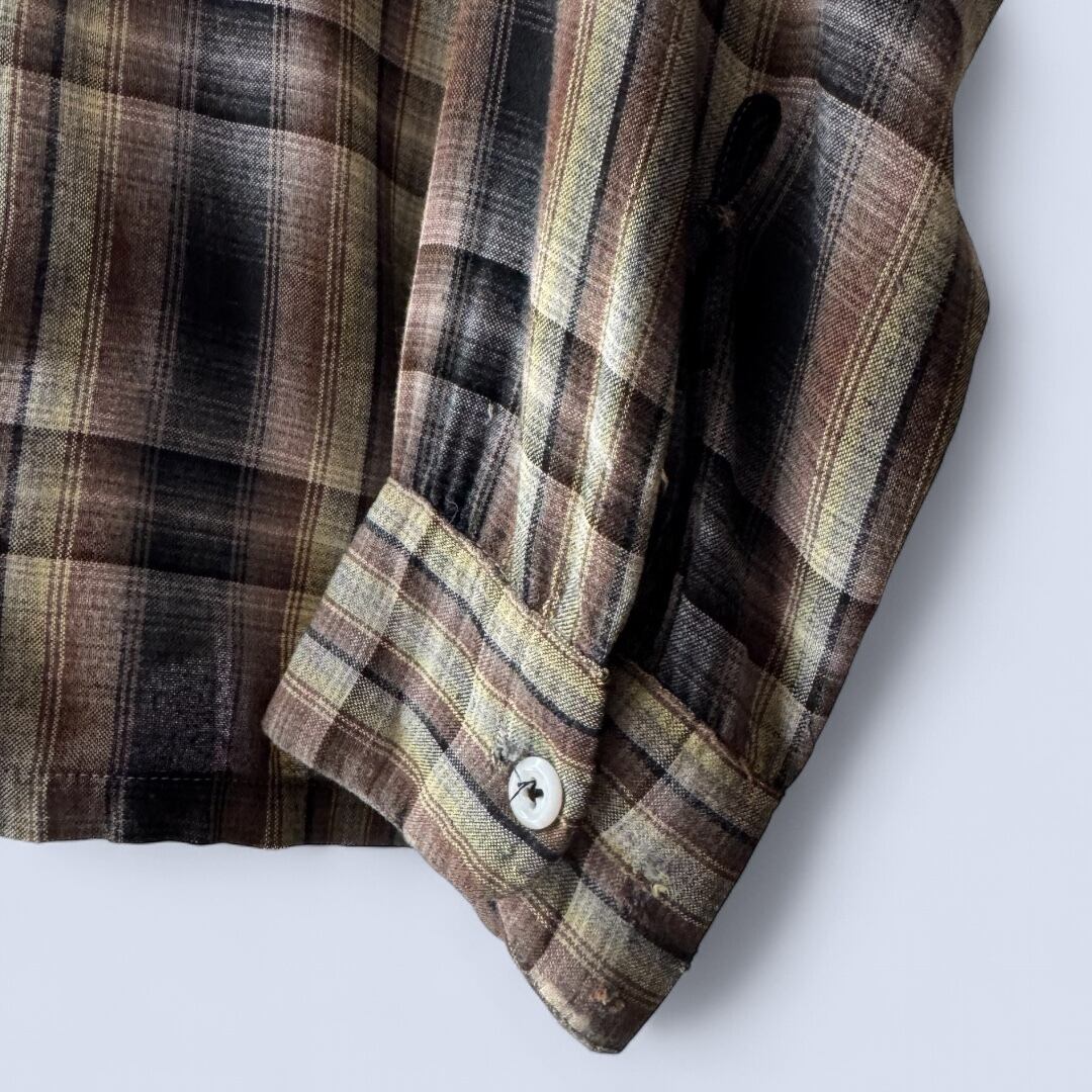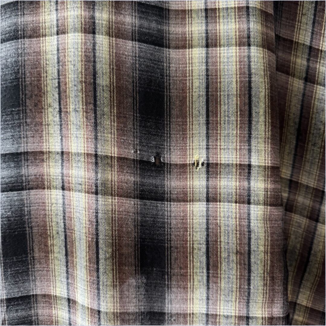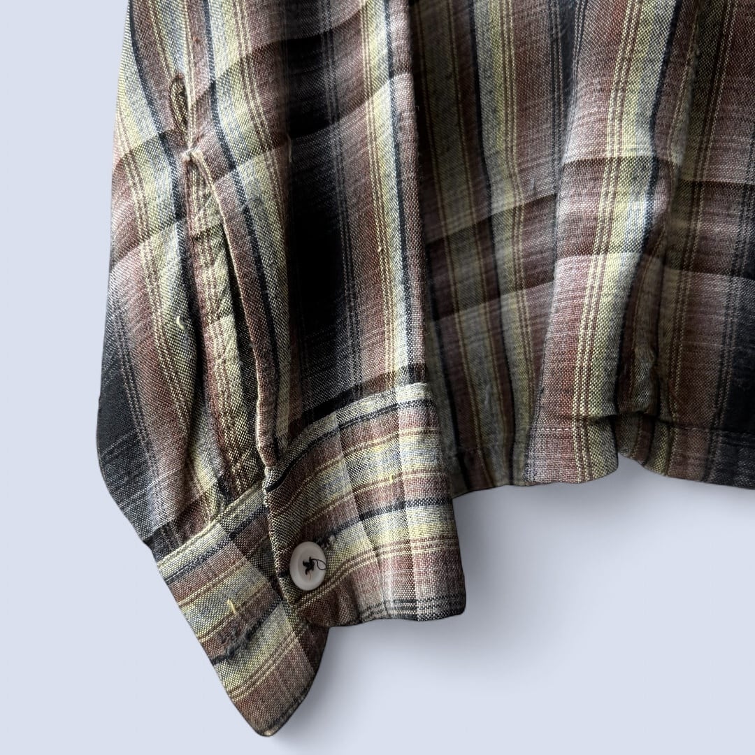 ブラウン〜ブラックを基調にした渋みのあるグラデーションチェックは、アメリカンカジュアルにおけるレーヨンシャツの美学を体現
