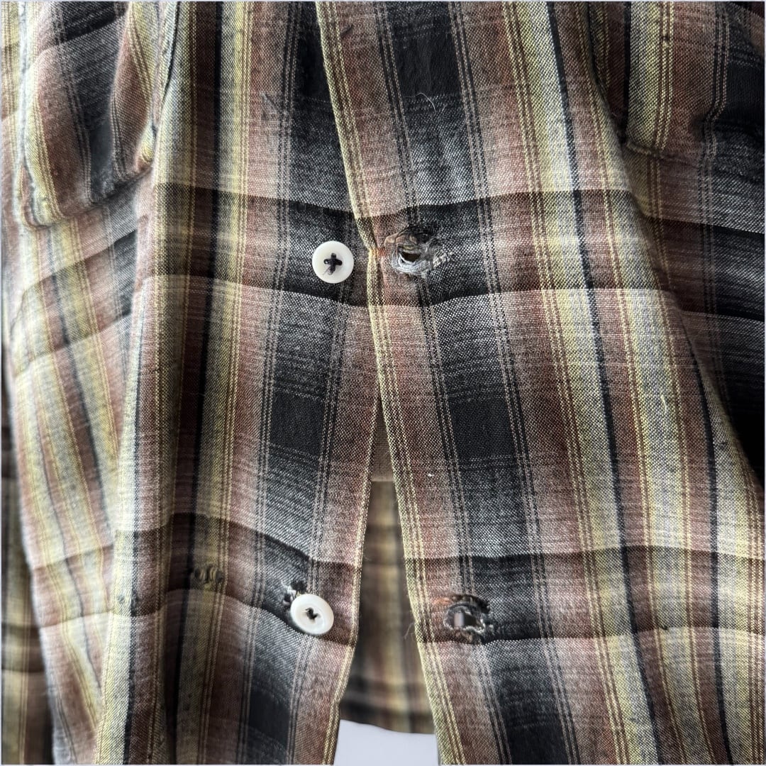 状態: フロントに小穴、ボタンホール周りの擦れなど、経年によるダメージはございますが、ヴィンテージならではの味わい深い雰囲気を醸し出しています