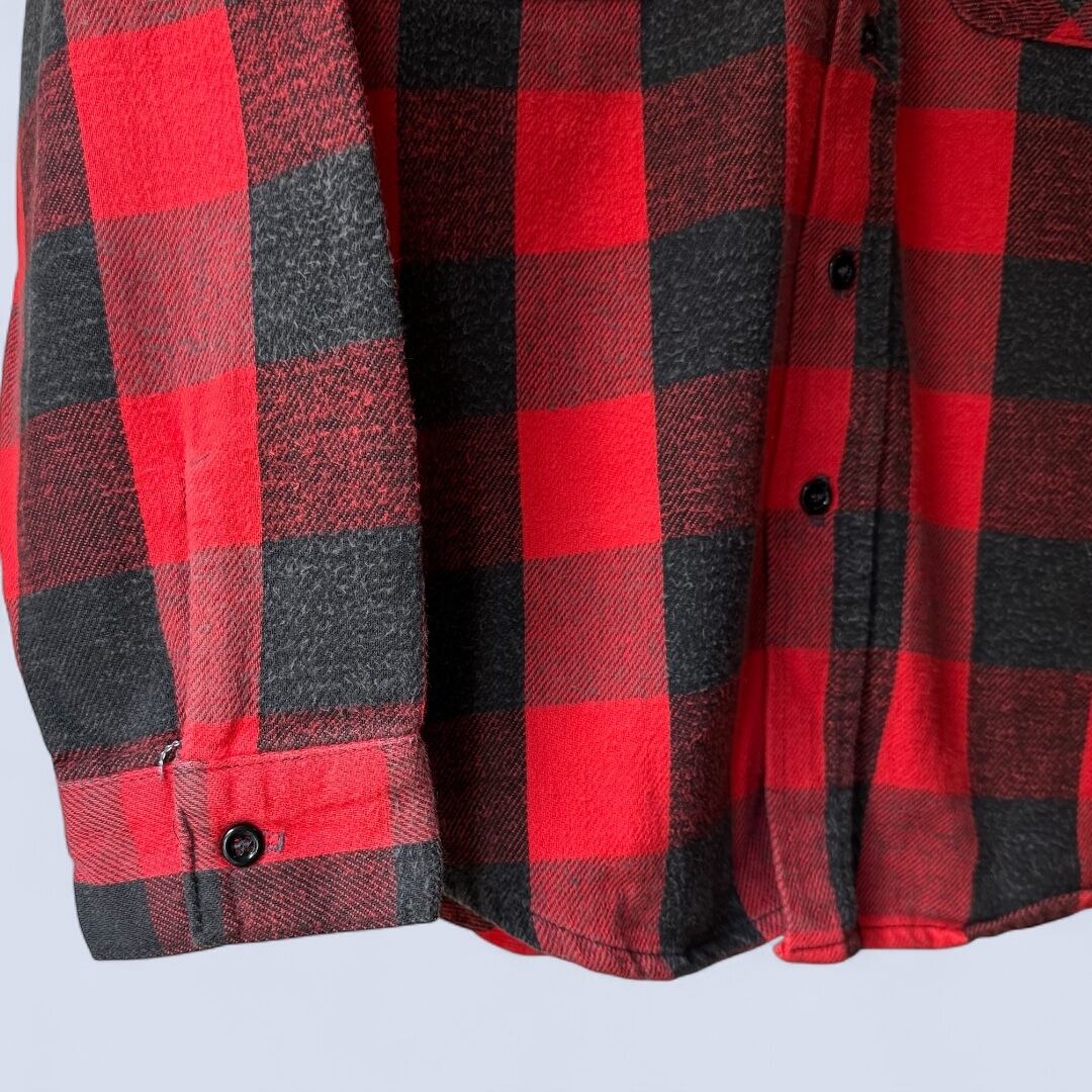 ヴィンテージネルの王道パターンともいえる赤黒のバッファローチェック。クラシックで力強い配色はワーク、アウトドア、アメカジのどのスタイルにも映え、着込むことでさらに雰囲気を増していきます。