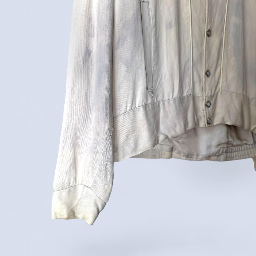 生成りのレーヨンに走るブリーチ痕とフェード感が、まるでキャンバスに描かれた抽象画のような仕上がり