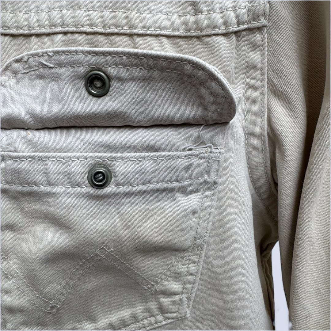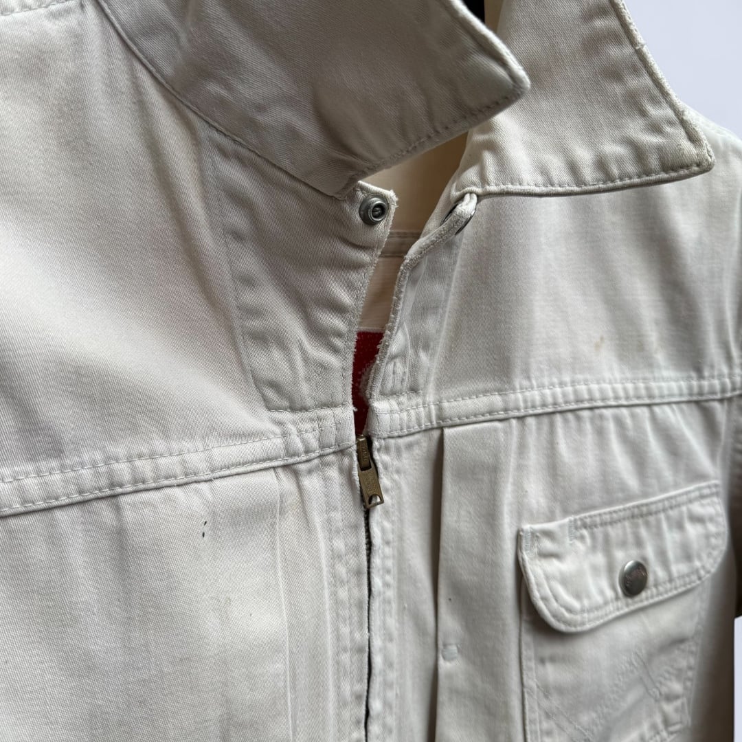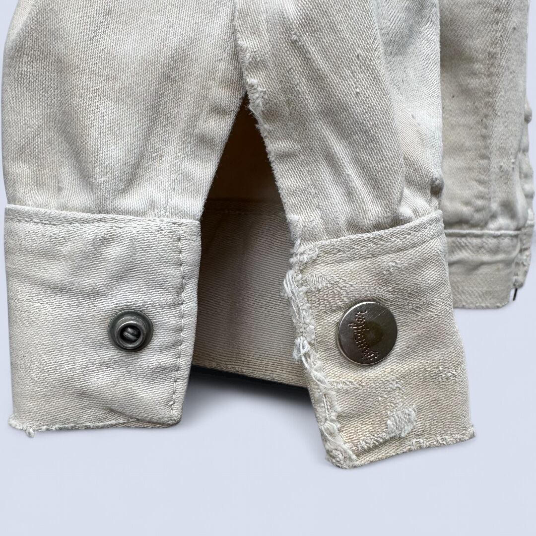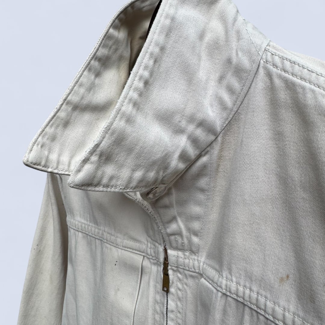 状態詳細:ボディ全体に経年の薄汚れ・ヤケあり。フロントジップテープ付近に僅かなホツレあり。致命的なダメージはなく、当時のリアルなエイジングを色濃く残すコンディションです。バックのチェーンステッチは極めて良好で、ヴィンテージMCカルチャーを象徴する貴重な一着。