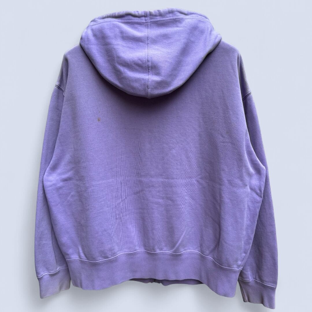 フェード感のある淡いラベンダーカラーが印象的で起毛スウェット素材の程よい厚みで通年着用可能