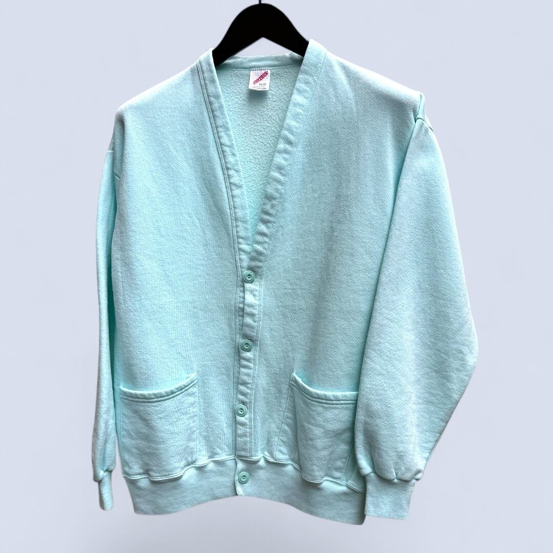 1990's ~ Jerzees Sweat Cardigan Tiffany Blue