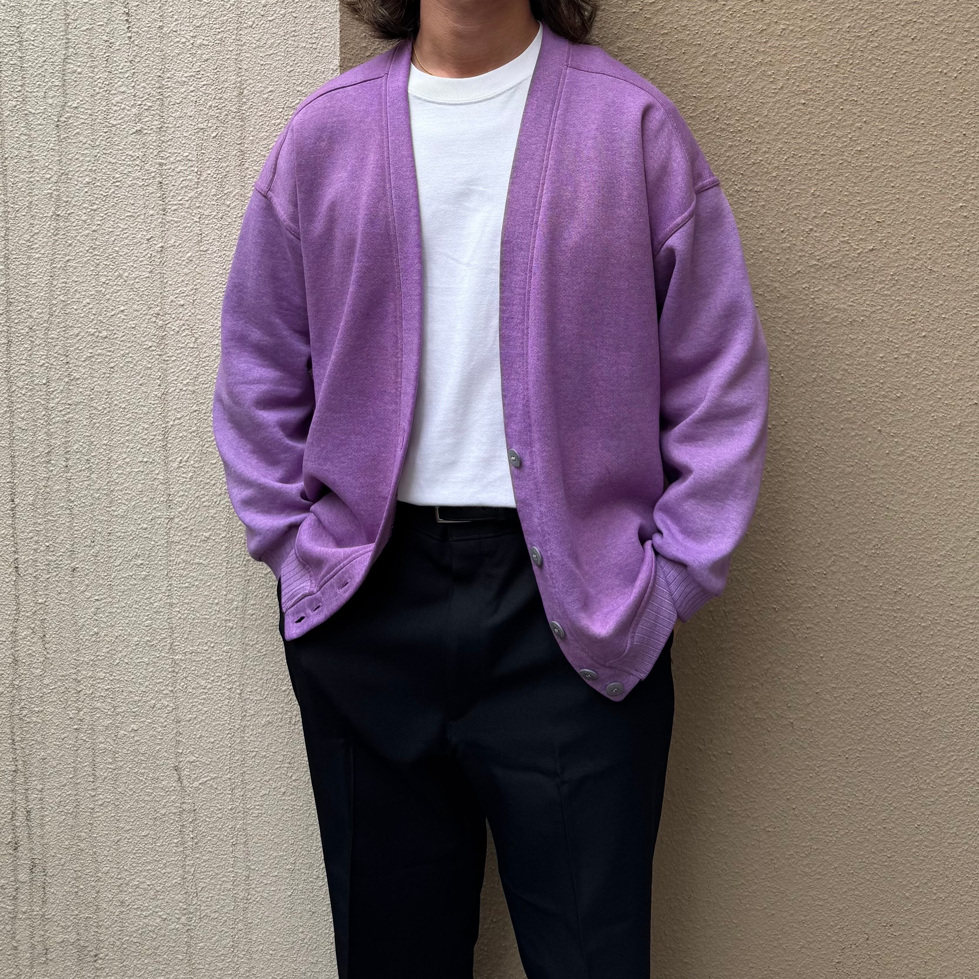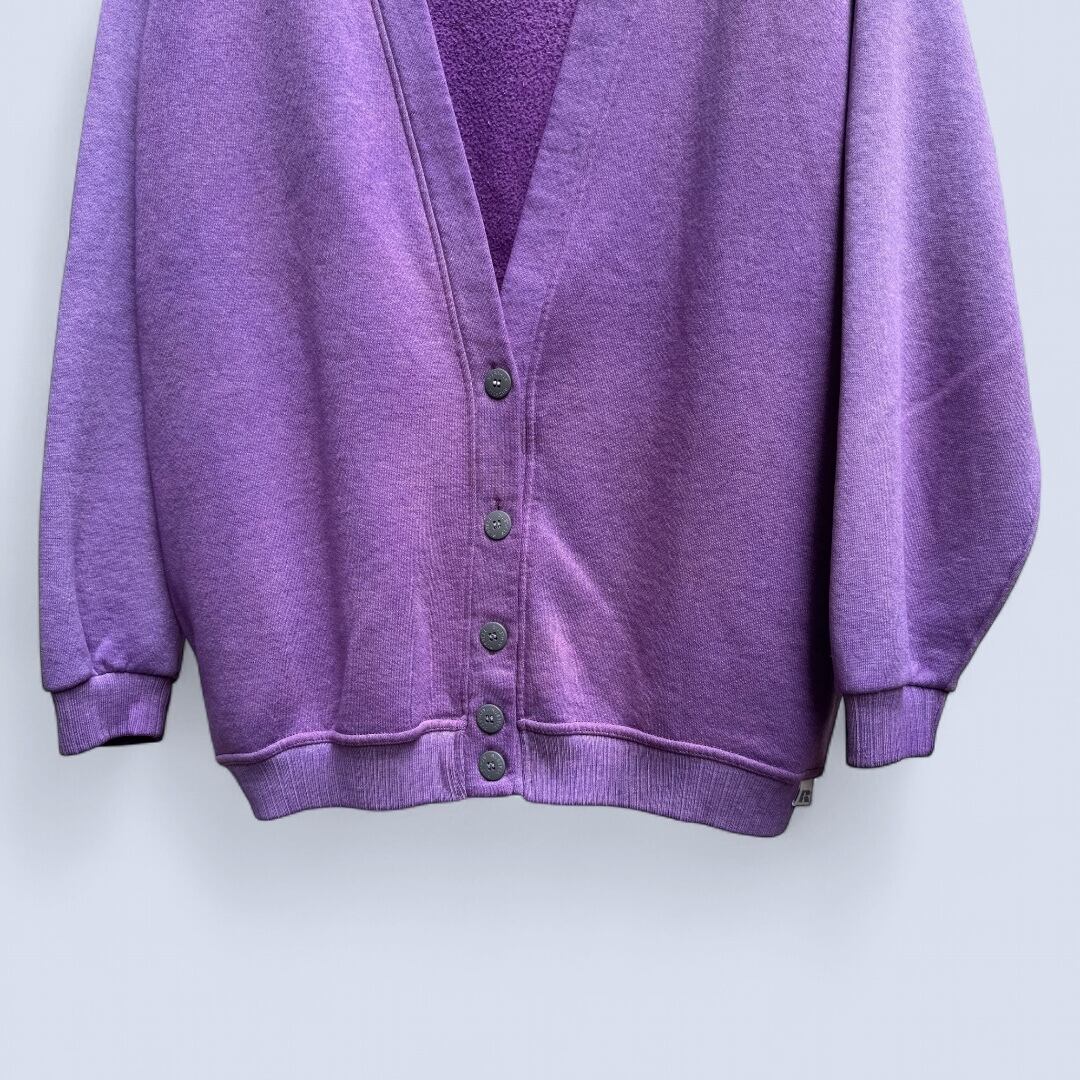 全体的にフェードしたパープルカラーのGOODスウェットカーディガンです