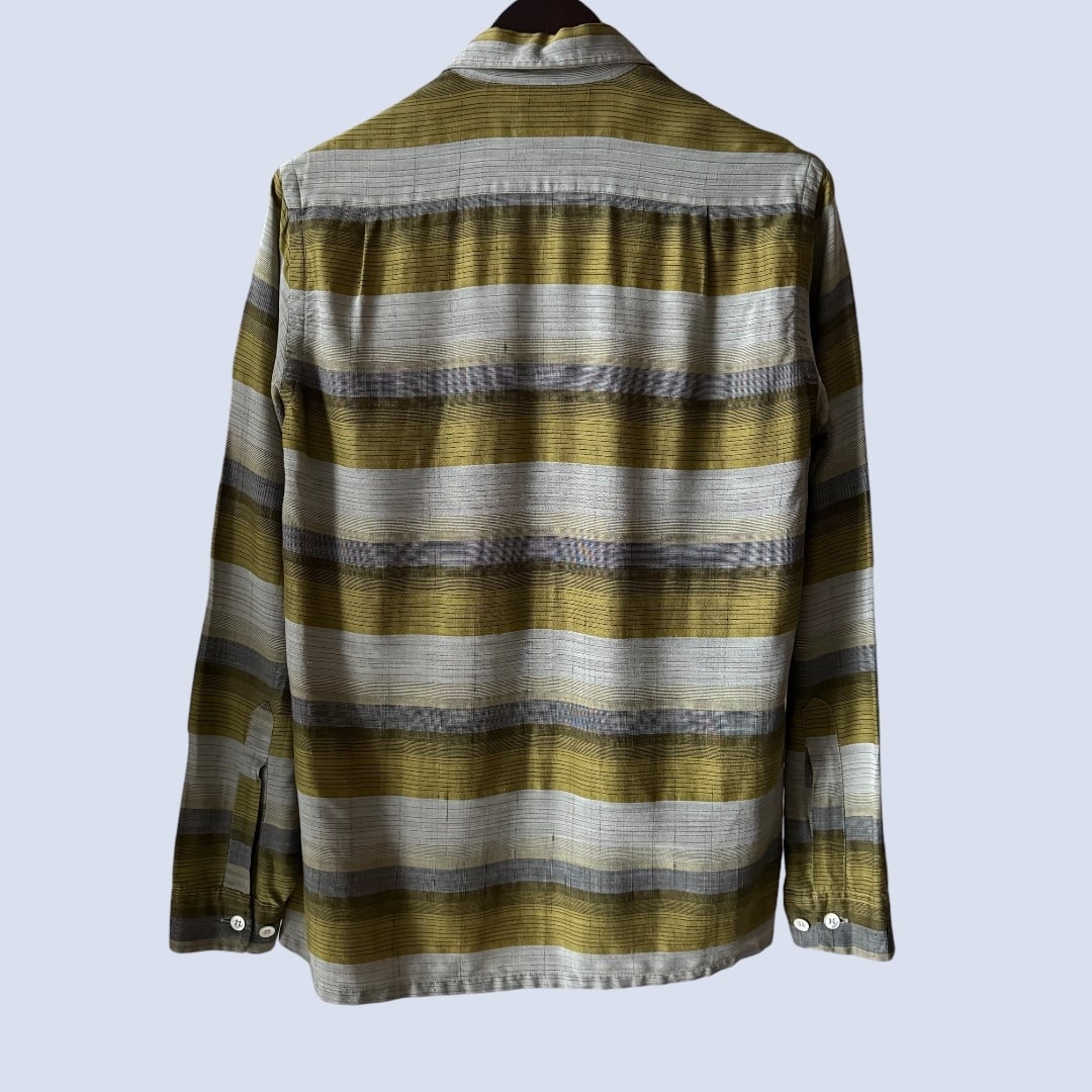 オリーブ・グレーを基調とした横段ストライプ柄が特徴で、50年代らしい落ち着きと品のある雰囲気を持っています