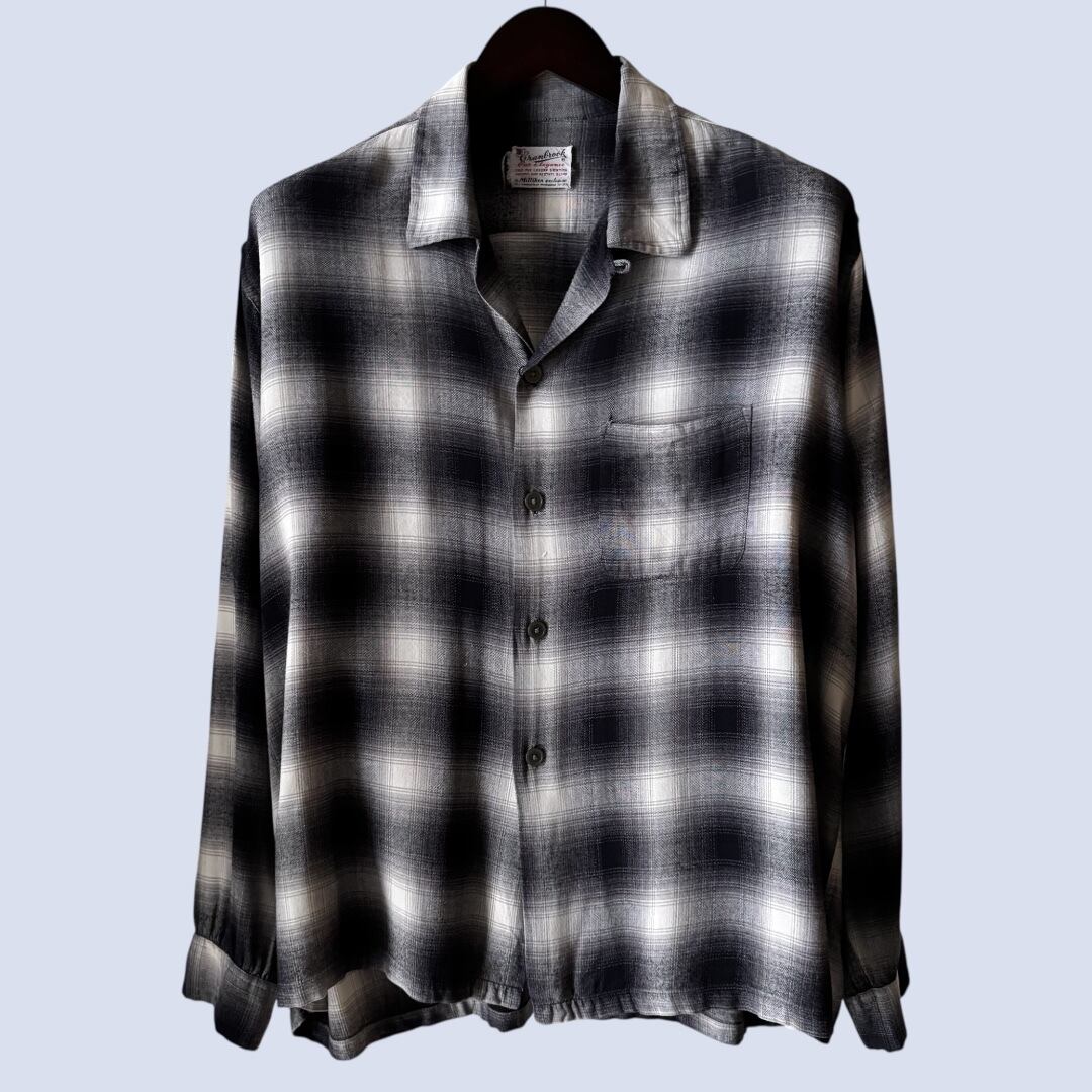 1950's ~ CRANBROOK SHADOW PLAID RAYON SHIRT ・ BLACK×WHITE ・ BIG SIZE サイズ、カラー、状態良しの文句無い一着です。 size:XL 実寸:肩幅 51cm / 身幅 68cm / 着丈 72cm / 袖丈 62cm 状態詳細:全体的に目立つダメージの見られないVERY GOOD CONDITIONです。 非常におすすめの逸品です この機会に是非ご検討ください