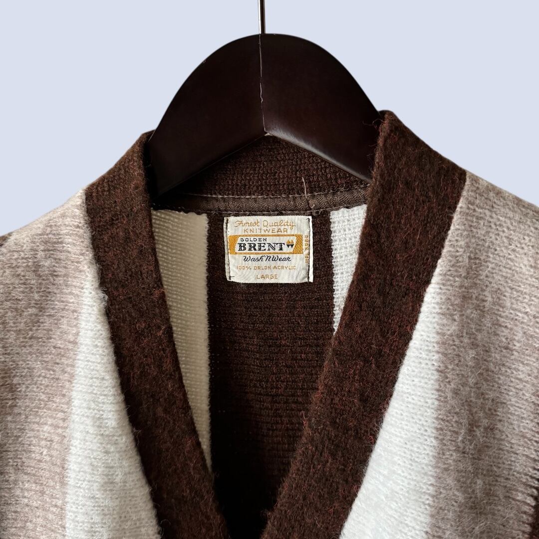 1960's ~ GOLDEN BRENT ACRYLC CARDIGAN ・ 100%ORLON ACRYLC size:L 実寸:肩幅 50cm / 身幅 57cm / 着丈 65cm / 袖丈 65cm 状態詳細:右袖部分に一箇所シミがございます。その他特筆して目立つダメージがないGOOD CONDITIONです。 非常におすすめの逸品です この機会に是非ご検討ください
