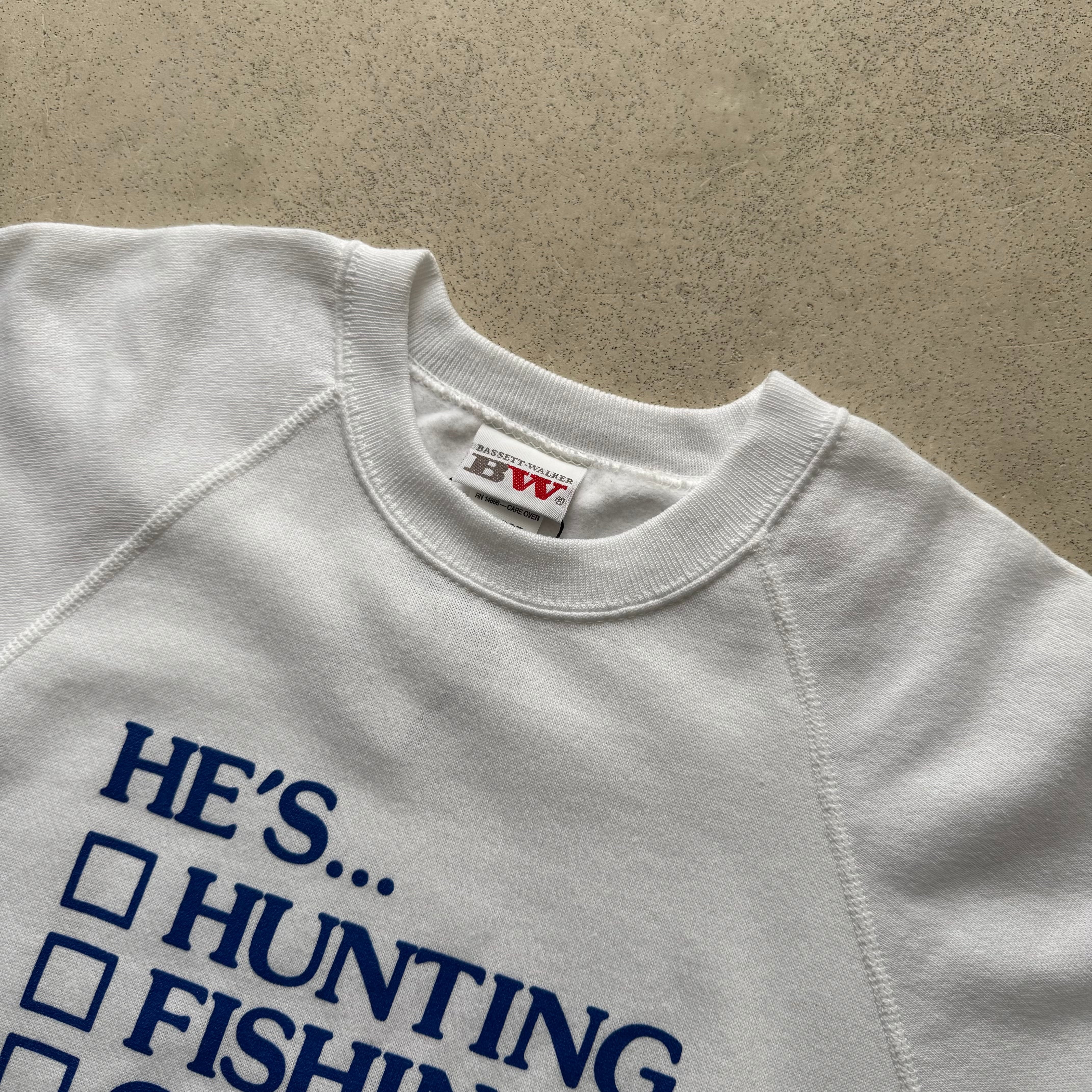 1980's ~ BASSETT WALKER PRINTED SWEAT SHIRT "DEADSTOCK" ・ MADE IN USA ・ 50%COTTON 50%POLYESTER size:L 実寸:ゆき丈89cm / 身幅 55cm / 着丈 67cm 状態詳細:DEADSTOCK 保管時による薄汚れが僅かに確認できる程度で裏地もフカフカなVERY GOOD CONDITIONです。 非常におすすめの逸品です この機会に是非ご検討ください