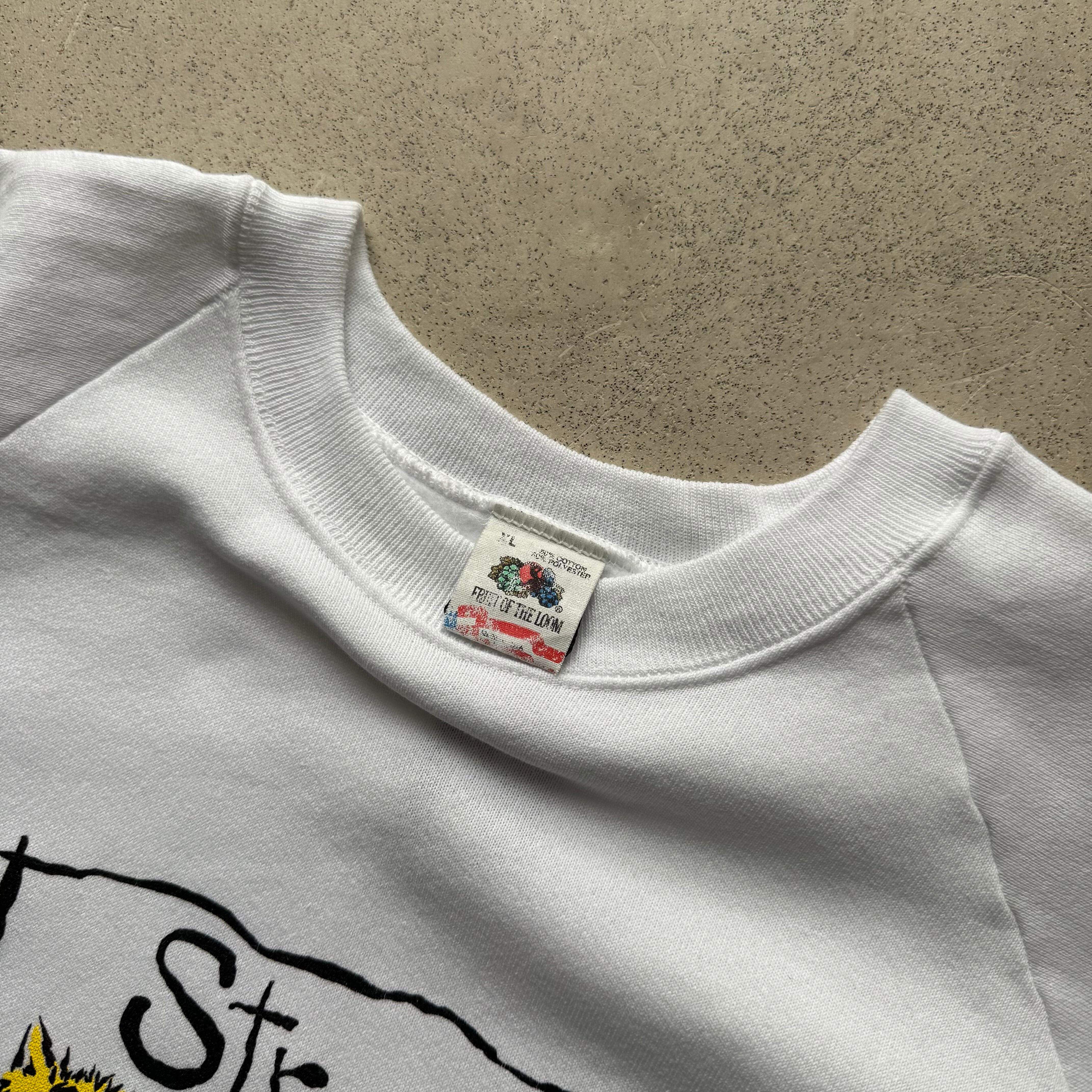 1980's ~ FRUIT OF THE LOOM PRINTED SWEATSHIRT ・ MADE IN USA ・ 50%COTTON 50%POLYESTER size:XL 実寸:ゆき丈 95cm / 身幅 59cm / 着丈 67cm 状態詳細:白ボディ特有の目立った汚れ/しみ等もなく裏地もフカフカなVERY GOOD CONDITIONです。 非常におすすめの逸品です この機会に是非ご検討ください