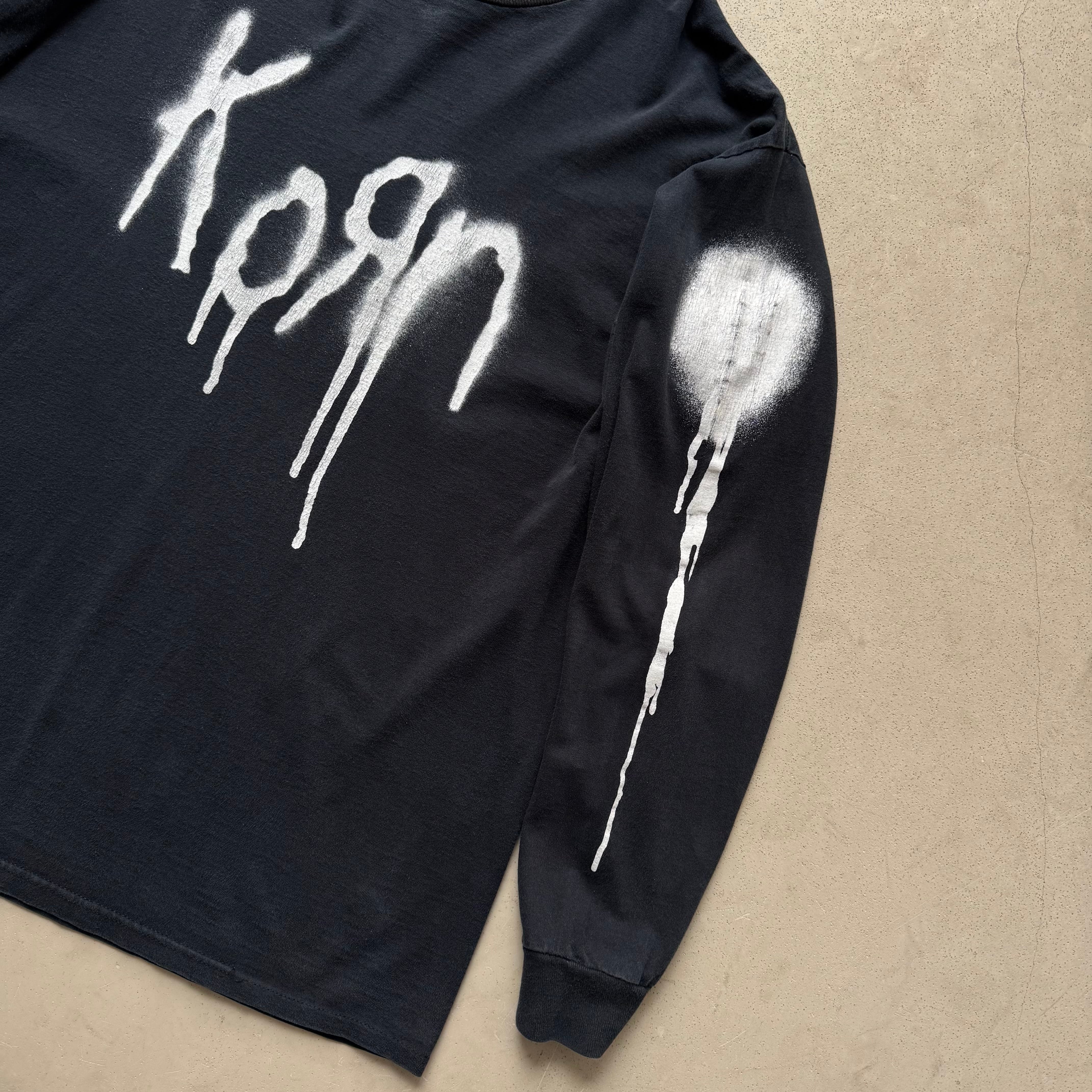 1990's ~ KORN LONG SLEEVE PRINTED SHIRT ・ 100%COTTON size:XL 実寸:肩幅 57cm / 身幅 60cm / 着丈 71cm / 袖丈 60cm 状態詳細:全体的にフェードしており首元のリブとボディが2トーンになっている良い雰囲気の一着です。目立つダメージの見られないGOOD CONDITIONです。 非常におすすめの逸品です この機会に是非ご検討ください
