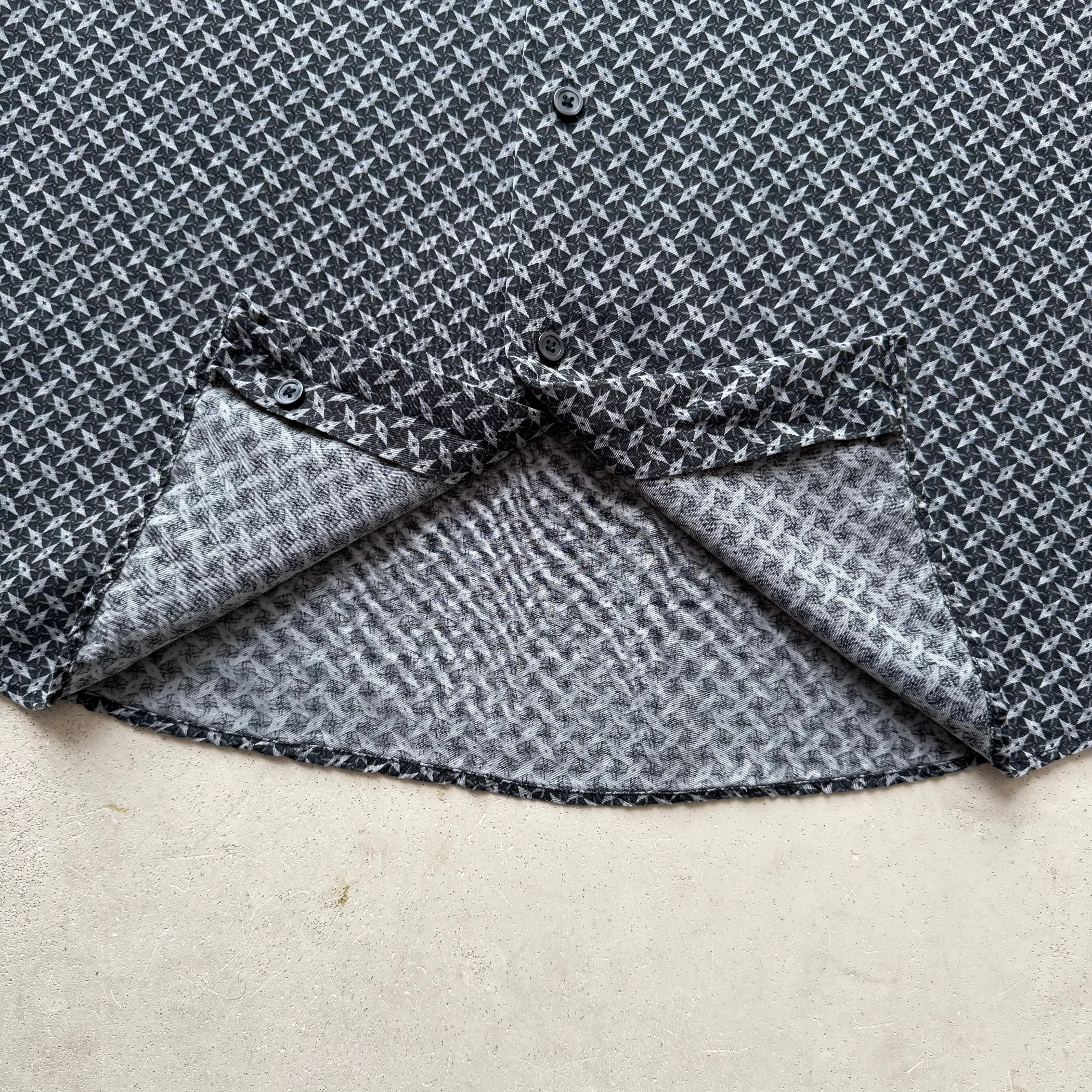 1990's ~ Claiborne GEOMETRIC PATTERN RAYON SHIRT ・ 100%RAYON size:L 実寸:肩幅 53cm / 身幅 62cm / 着丈 77cm / 袖丈 62cm 状態詳細:目立つダメージの見られないGOOD CONDITIONです。 非常におすすめの逸品です この機会に是非ご検討ください