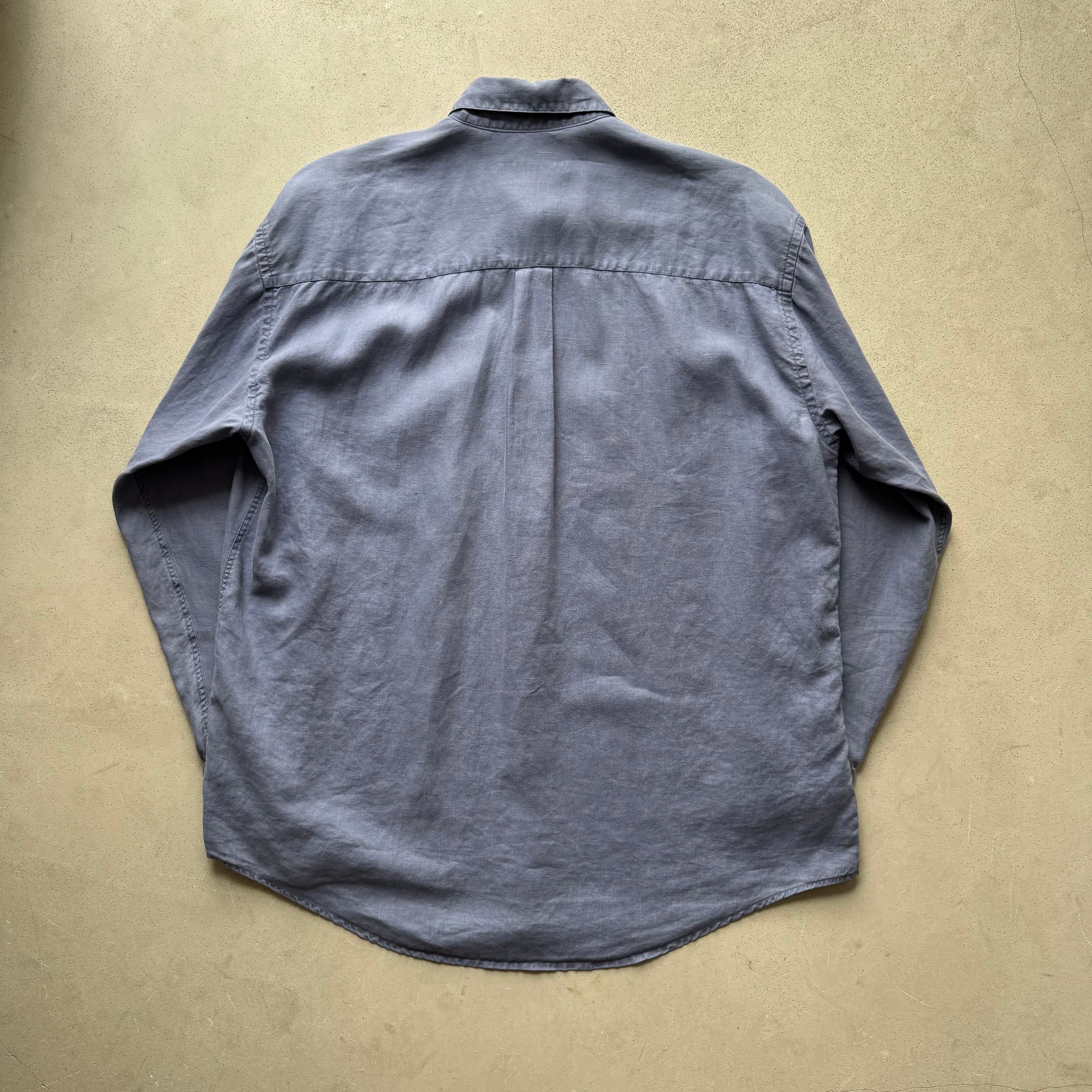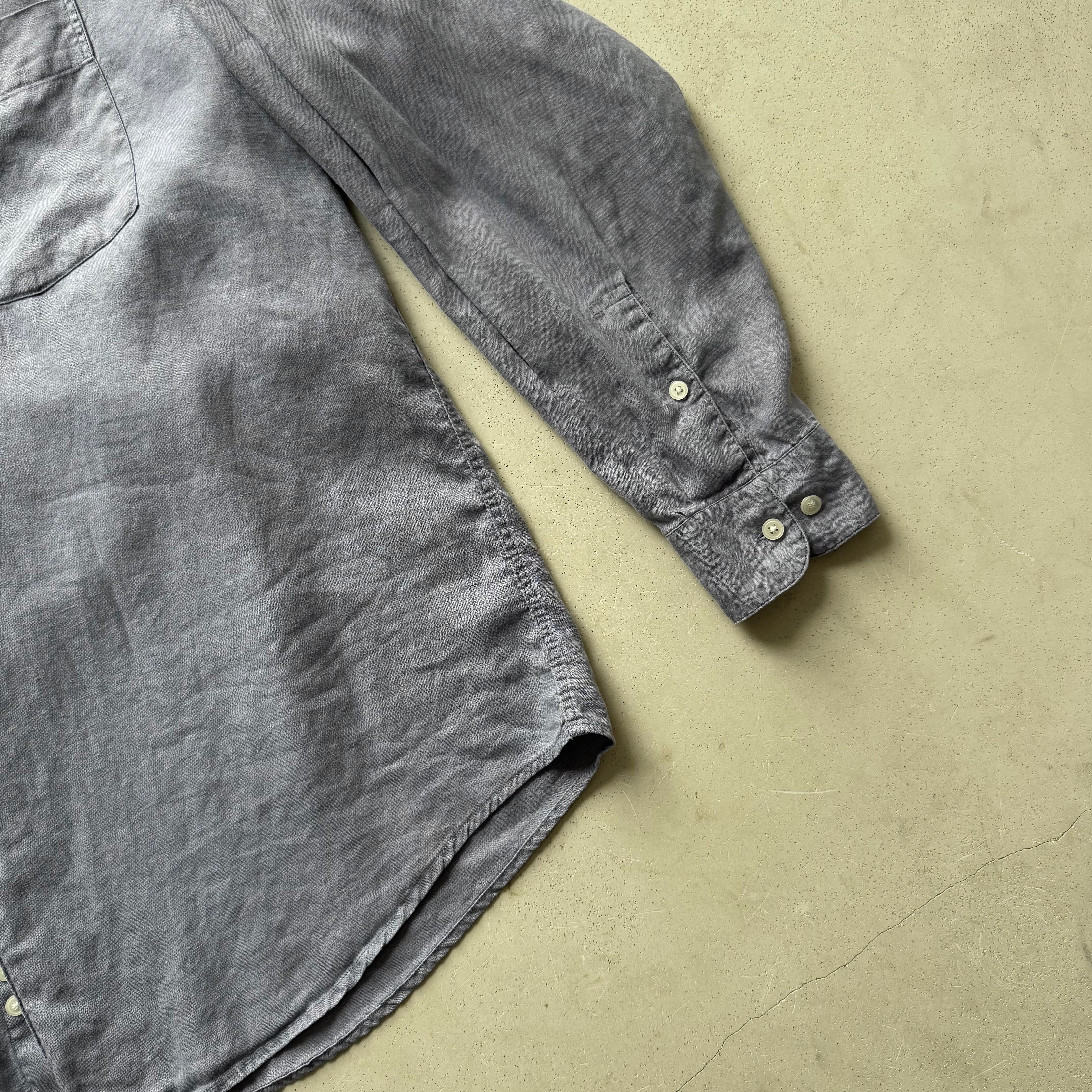 1990's ~ PERRY ELLIS SOLID COLOR LINEN SHIRT ・ 100%LINEN size:L 実寸:肩幅 57cm / 身幅 66cm / 着丈 82cm / 袖丈 60cm 状態詳細:リネン生地特有のネップ感があり全体的に若干のフェードをした良い雰囲気の一着です。特筆して目立つダメージの見られないGOOD CONDITIONです。 非常におすすめの逸品です この機会に是非ご検討ください